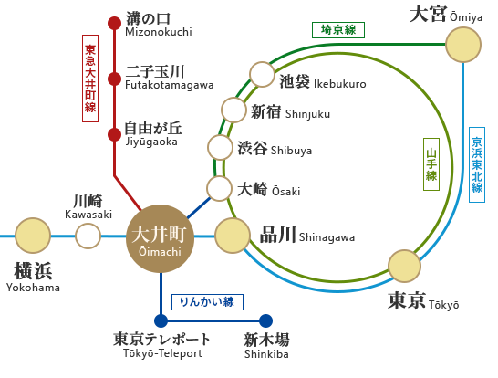 中でも京浜東北線は、品川・東京から乗り換えなしでお越しいただけるうえ、北は大宮、南は横浜からもアクセスが容易です。